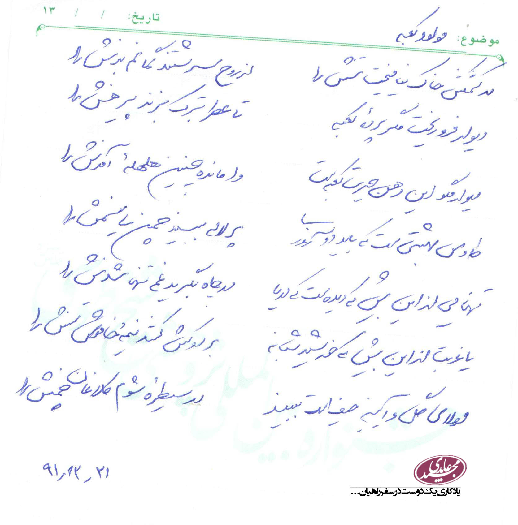 کار تمام می شود و سامی قطعه را بالا می گیرد. نوشته است : الله الله ...